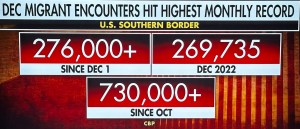 As reported by The New York Post, approximately a quarter million illegal aliens attempted to cross America’s overwhelmed Southern border in November, 2023 according to Custom and Border Protection. This represents the highest November number and the third-highest monthly total on record. The November totals have only been eclipsed twice before: in September, 2023 when 269,735 illegals were encountered and in December 2022 when 252,315 migrants were encountered. The Biden administration has attempted to keep a lid on the numbers being released, in addition to attempt to place blame for this administration’s failure to address the incursion on the Trump administration. Furthermore, the December 2023 numbers, which will be released in January, 2024, are anticipated to be even higher. DHS Secretary Alejandro Mayorkas won’t have any major holidays as a distraction to help cover the hideous situation that he helped create, while constantly lying through his teeth to the Congress.