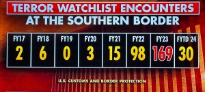Continuing, the number of illegal aliens on the terror watchlist caught by CBP in the first two months of the new fiscal year puts 2024 on pace to hit a new record, according to update information. CBP documented a total of 31 illegal aliens whose names appeared on the terror watchlist so far in fiscal year 2024, 13 of which were arrested in October, according to the data. CBP recorded 172 encounters of illegals whose names appeared on the watchlist in fiscal year 2023, 98 in fiscal year 2022 and 16 in fiscal year 2021. The increasing numbers are screaming about the lack of border security…thanks to Biden’s magnanimous immigration policies.