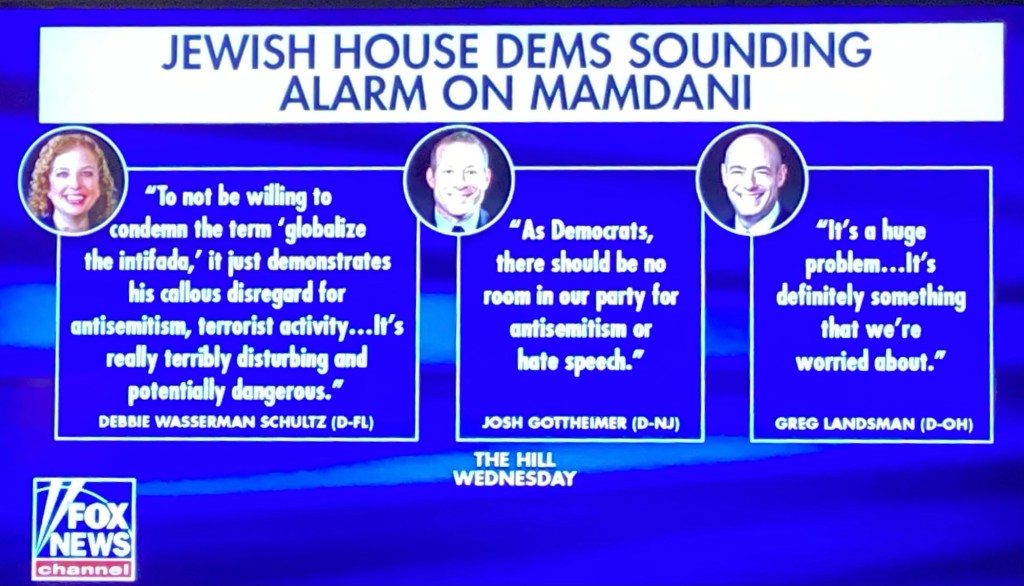 As it stands right now, only four Jewish members of the House have condemned Mamdani for his anti-Israel, anti-Semitic agenda and his support of the BDS movement. That rather short list includes Representatives Debbie Wasserman-Schultz(FLA), Josh Gottheimer(NJ) and Greg Landsman(OH). Representative Jared Moskowitz(D-FLA), who represents a part of the Sunshine State with a substantial Jewish population, during an interview with “The Hill,”stated: “If he can’t tell people ‘globalizing the intifada…if he can’t say that that’s anti-Semitic, then obviously he’s going to continue to add to the problem, not deflate it.” The Jewish Congressional Democrats remain silent out of fear and facing ridicule by fellow Democrats and the bootlicking dregs of the coastal, corporate, legacy mainstream media.
