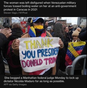 POTUSDJT quoted the Monroe Doctrine, which was written by President James Monroe, the sixth president of the United States. President Donald John Trump was enforcing the laws that Biden and the worst administration in US history not only failed to support, but removed Venezuela’s sanctions and opened that country for business, allowing our adversaries to gain a foothold in the Western Hemisphere…our backyard. Venezuela is an oil rich country with 17% of the planet’s supply, that sells 80% of its stock to the draconian Communist Chinese Republic, which no doubt will change the balance of the stiff tariffs imposed by the Trump administration. And Cuba was getting the oil on the cuff because they supported Maduro with armed forces. And yes, despite the hissy fits, and accusations, from the radical, progressive left, the bootlicking dregs of the legacy, corporate mainstream media, the unhinged TDS afflicted Democrats and the protesters with their professional, premade signs, oil money will play a factor in restoring Venezuela to her once prominent place in South America to the benefit of her citizens. It was reported that Caracas was as gorgeous as NYC after Mayor Giuliani cleaned up the city. And now?