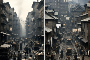 And by the way, Tammany Hall’s election enforcement arm was conducted by the gangs in The Five Points, which was located in lower Manhattan throughout the 1800s. The area was populated by gang members and criminals of all types, and was widely known, and feared, as the home turf of flamboyant gangs of Irish immigrants. The reputation of the Five Points was so widespread that when Charles Dickens visited NYC on his first trip to America in 1842, the chronicler of London’s slums wanted to see it for himself. Nearly 20 years later, Abraham Lincoln visited the Five Points during a during a visit to NYC while he was considering running for president. Lincoln spent time at a Sunday school run by reformers trying to change the neighborhood and stories of his visit appeared in newspaper months later, during his 1860 presidential campaign. The Five Points took its name because it marked the intersection of four streets which came together to form an irregular intersection with five corners.